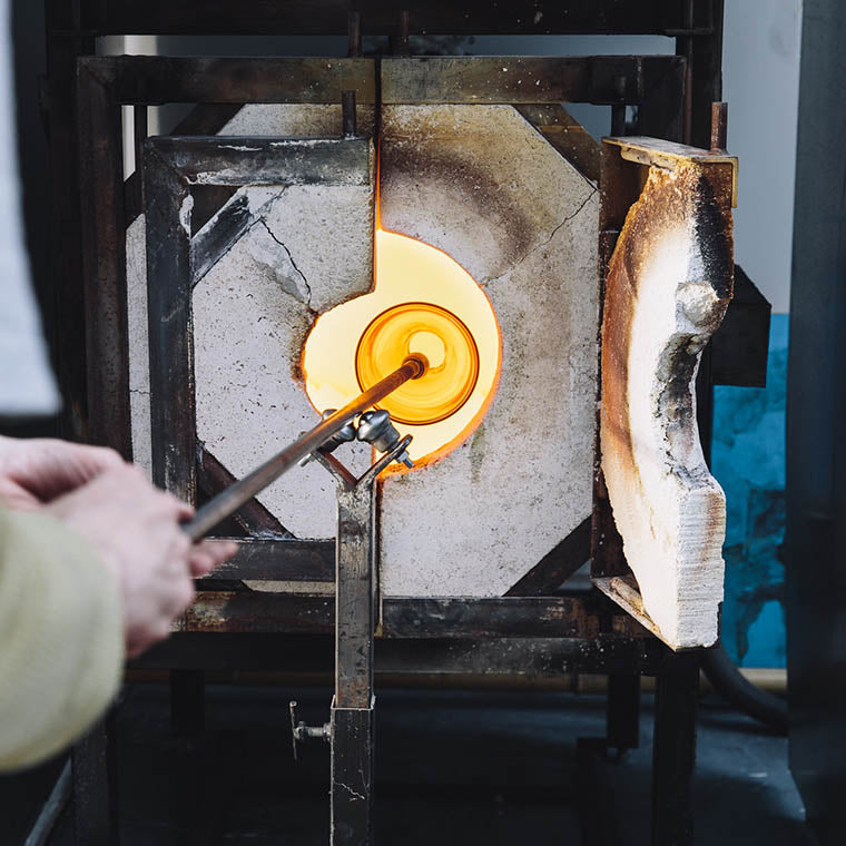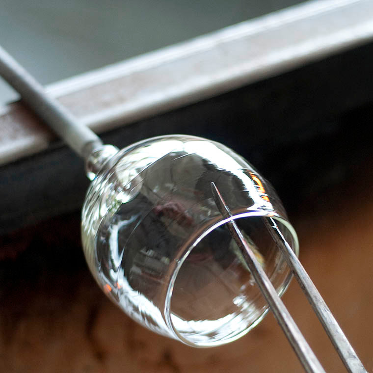 Optical quality glass is incredibly pure with a much higher refractive index than normal glass. It is usually used in binocular, camera and microscope lenses but we use it for its clarity, density and how it enhances our colour work. It is also harder to work with (literally) than normal glass and requires different styles of blowing, shaping and heating in the making of glass objects.